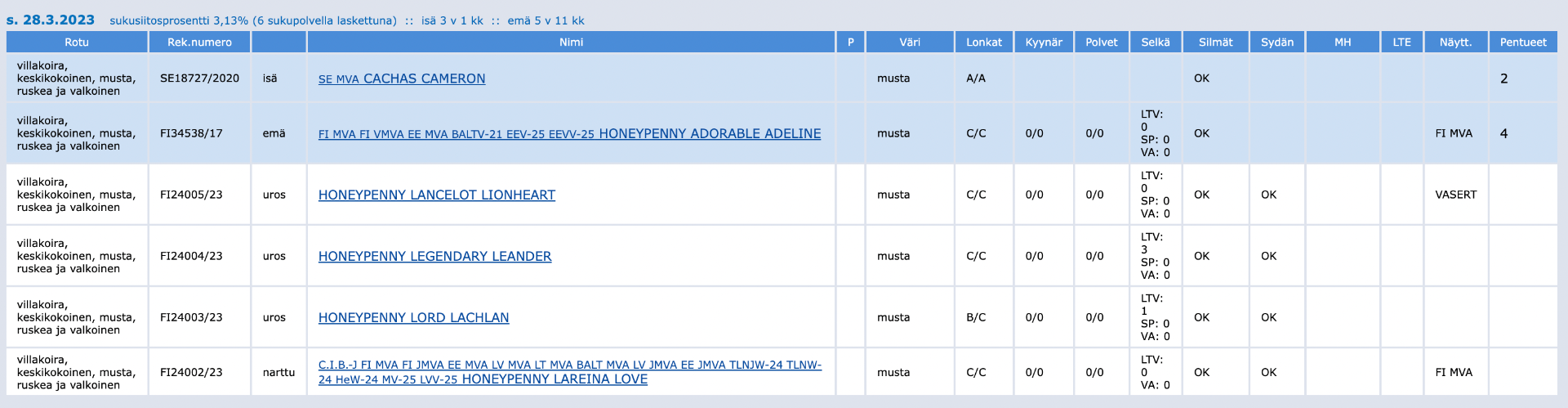 Pentueen isä on ruotsalainen Cameron, joka on paitsi upea katsella, myös terveydeltään ja varsinkin lonkkaindeksiltään erinomainen (suku huomioiden).