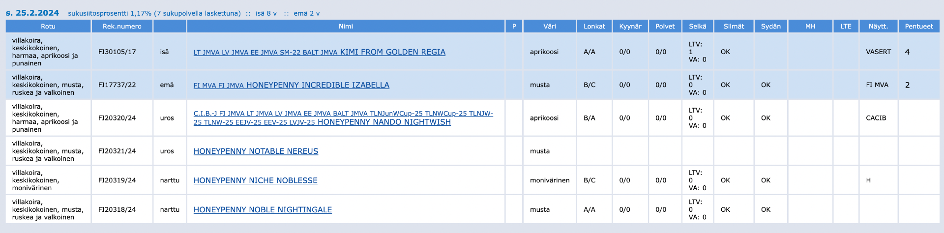 Pentueen emä on Sylvi, joka on aivan ihastuttava luonteeltaan, hyvin näyttävä, ryhdikäs ja hienoliikkeinen perhekoira. Nykyään jo haltijansa omistuksessa.