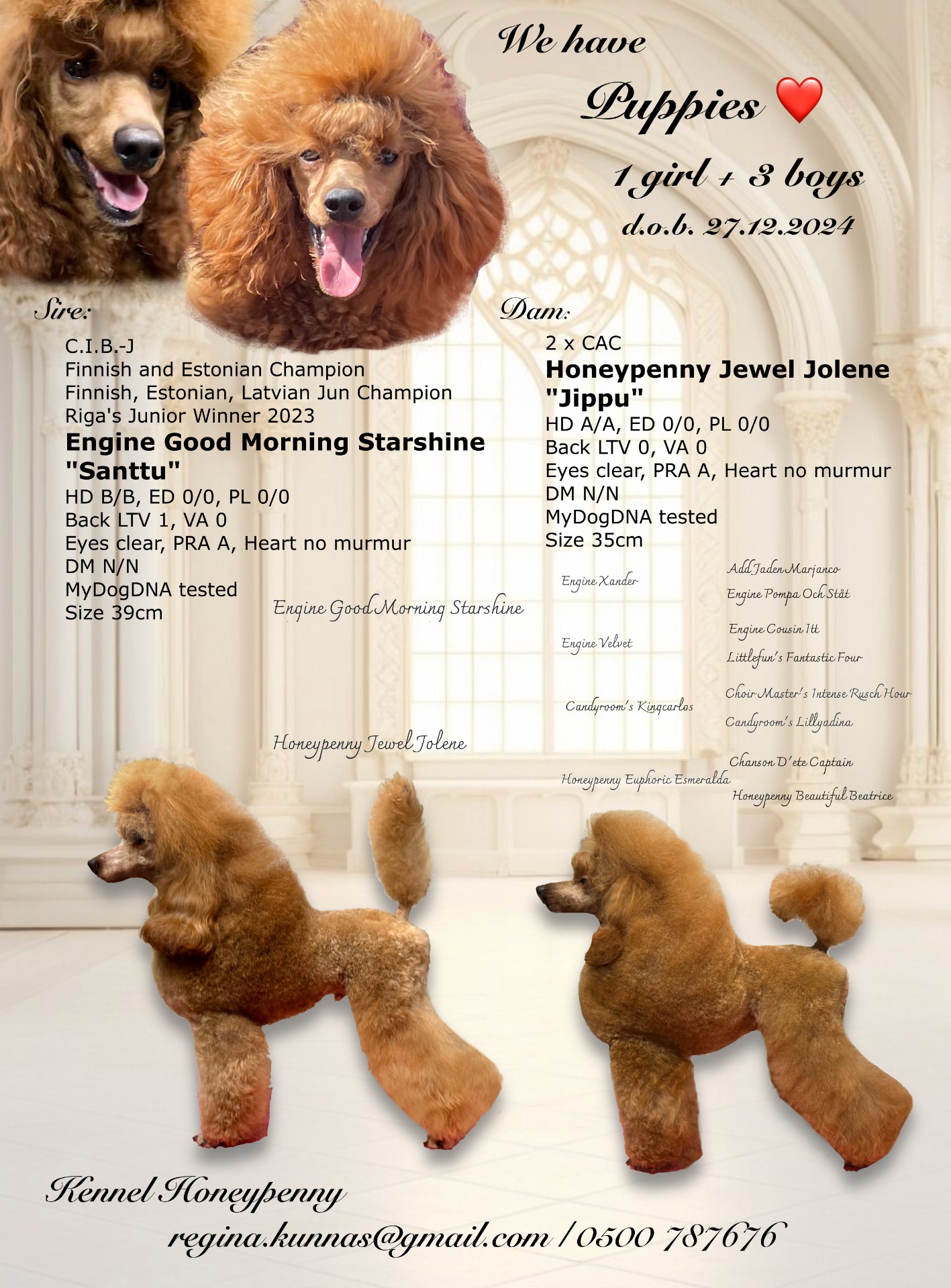 Pentueen isä on kivaluonteinen ja hieno periyttäjä Santtu, jonka hankimme Ruotsista jalostukseen